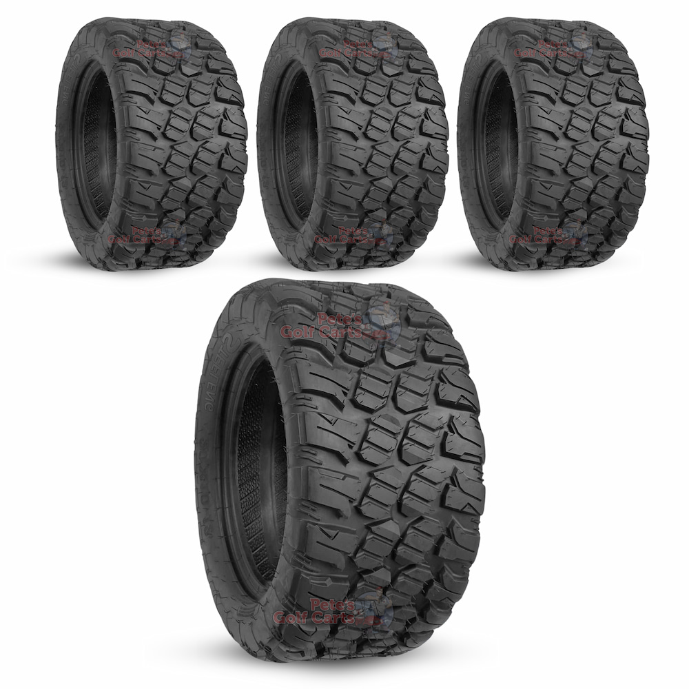 This Aurora 20×10-12 Tire is a great choice for anyone looking for the best quality aggressive all-terrain golf cart tires! Sporting an attractive tread design that offers great traction, this all-terrain golf cart tire is a perfect choice for a wide variety of golf carts and LSVs. This Aurora tire features 4-Ply DOT approved construction. Although this tire is great for off road use, it is just as comfortable on paved roads and paths. Using high quality components and creating cutting-edge products, Steeleng is a leader in the golf cart aftermarket industry.