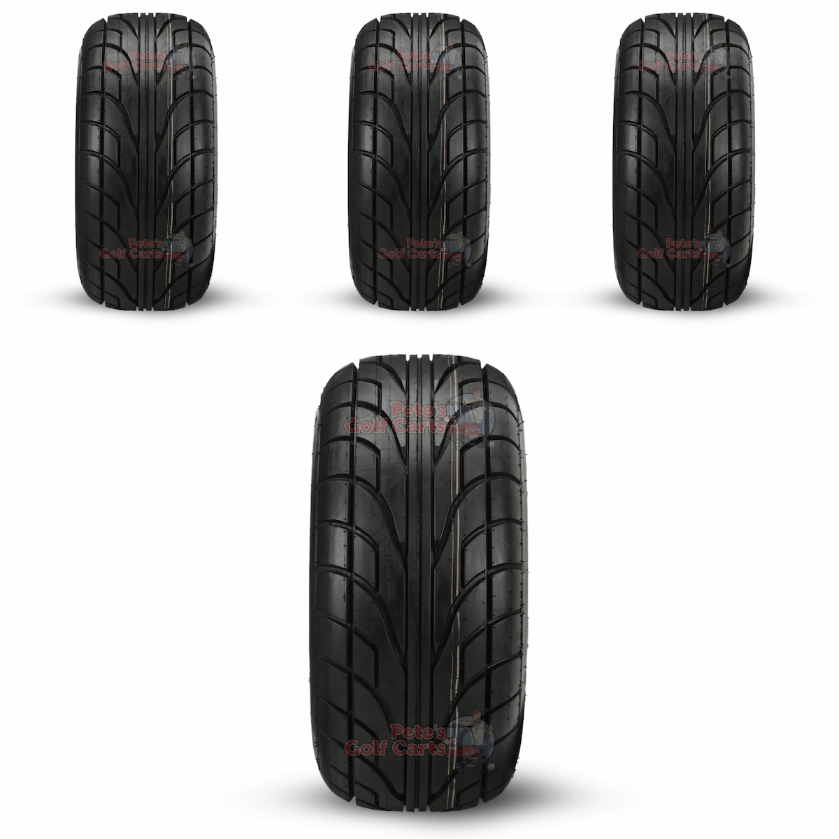 If you are looking for a quality set of new golf cart tires you have come to the right place. Great quality meets great value with all of Pete’s standard size golf cart tires. Pete says all orders over $99 ship free freight in the US. (Lower 48 states) So order your set today and save big! This specific golf cart tire is excellent for use on turf, pavement and gravel for a smooth ride. Not the tread or tire size you need? No Worries! Pete offers a complete line of tires for all applications and popular rim sizes. Whether you need something to cut thru the beach sand at your guess house or just run around the neighborhood Pete’s gotcha covered. FOR LESS! Go back to Pete’s Home page and click on Golf Cart Tires, Wheels and Accessories to find the complete line sub categorized by rim size and application. You can also save big on Pete’s tire and wheel combo deals so take a look there as well to save even more.