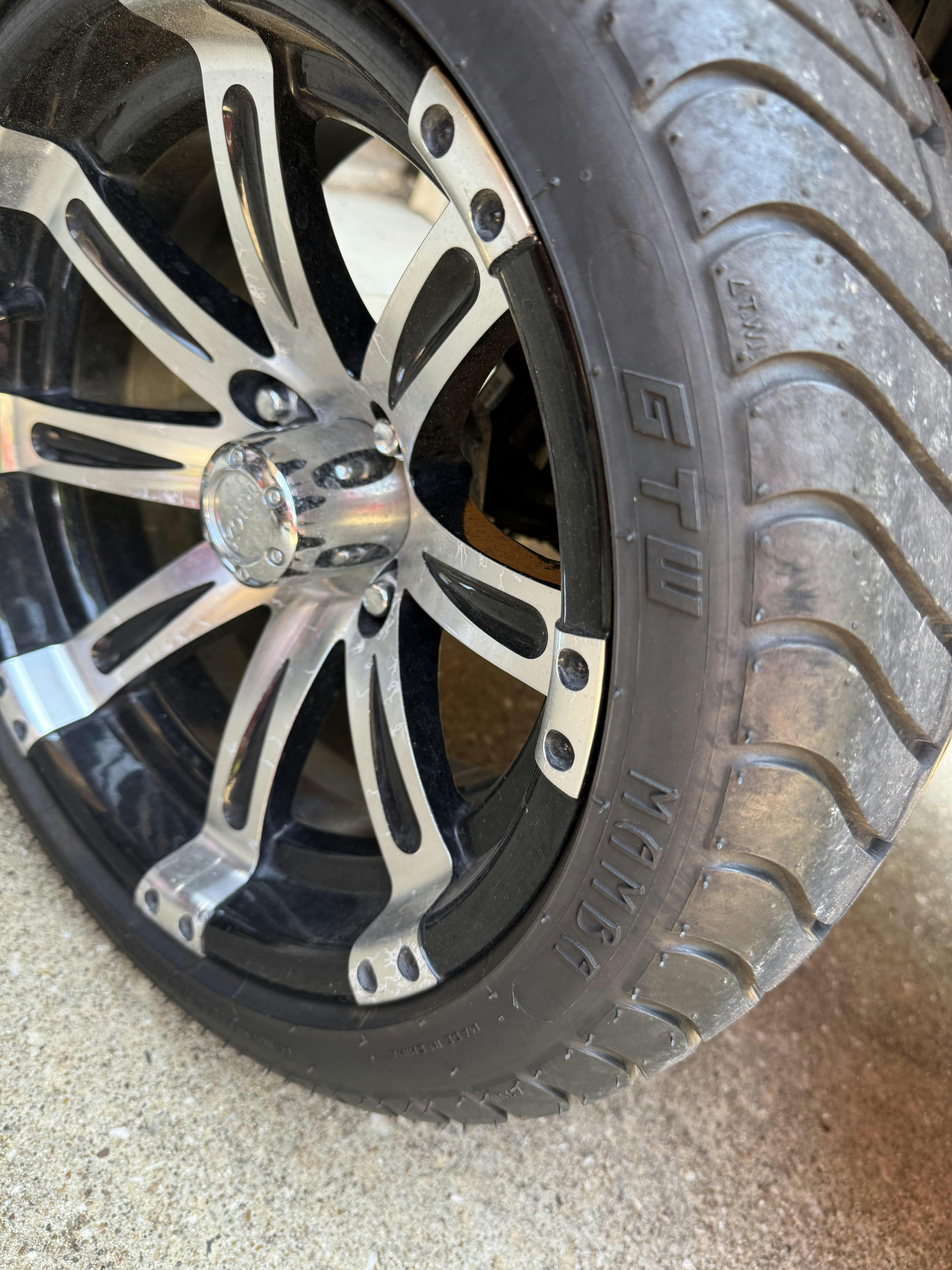 If you are looking for a quality set of new GTW® Mamba 225/30-14 tires for your golf cart you have come to the right place. Great quality meets great value with all of Pete’s standard size golf cart tires. This Golf Cart tire is designed for superior comfort and ride on pavement with excellent tread wear. Though good for use on turf and gravel as well. This Mamba golf cart tire is the only one Pete recommends when trying to stuff 14″ wheels under a stock height golf cart running the factory suspension. These 225/30R14 Low Profile Mamba GTW tires are the way to go!