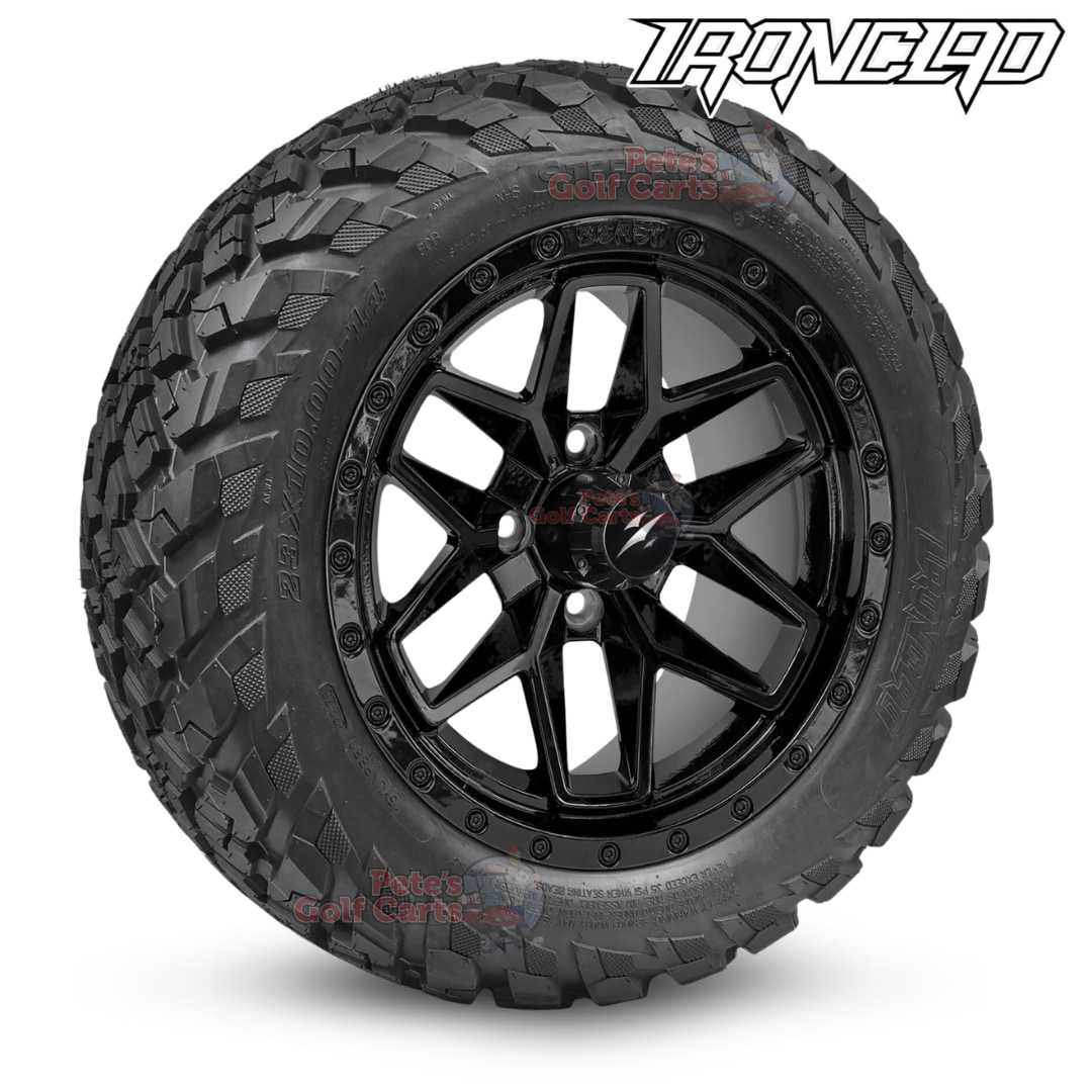 14″ Widow Gloss Black Golf Cart Wheels and 23″ย All Terrain Tires Combo – Set of 4 (23″ tall)