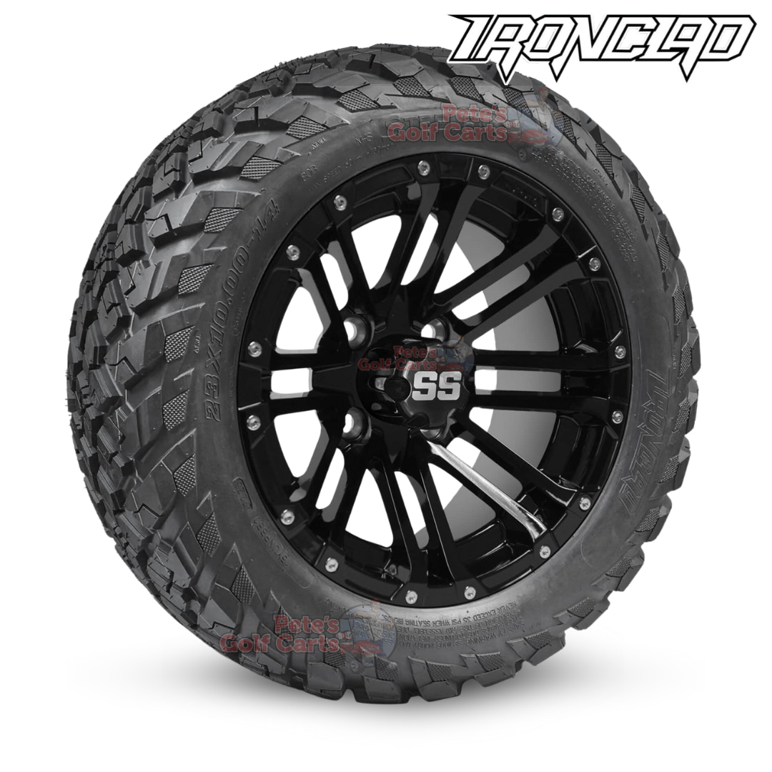 14″ Lancer Gloss Black Golf Cart Wheels and 23″ย All Terrain Tires Combo – Set of 4 (23″ tall)