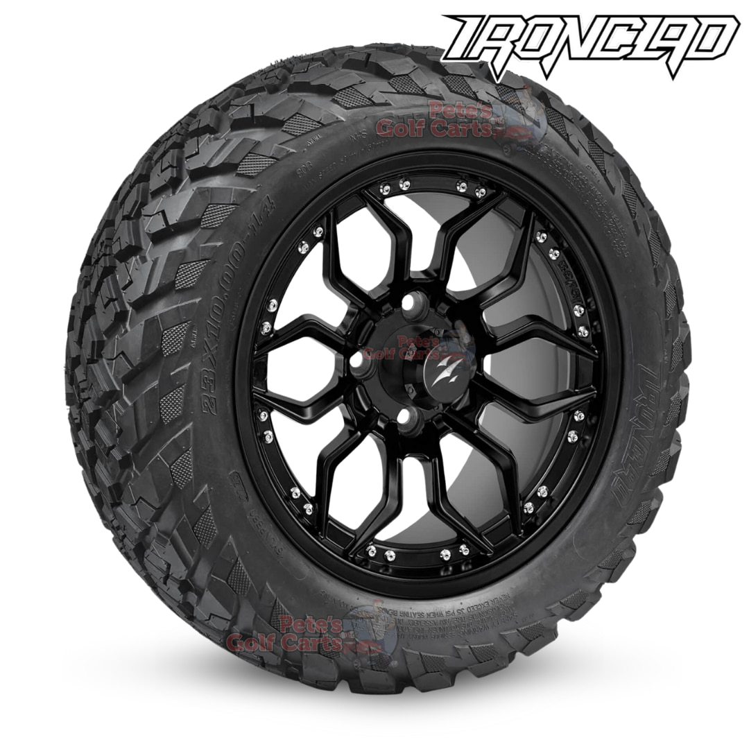 14″ Scorpion Matte Black Golf Cart Wheels and 23″ย All Terrain Tires Combo – Set of 4 (23″ tall)