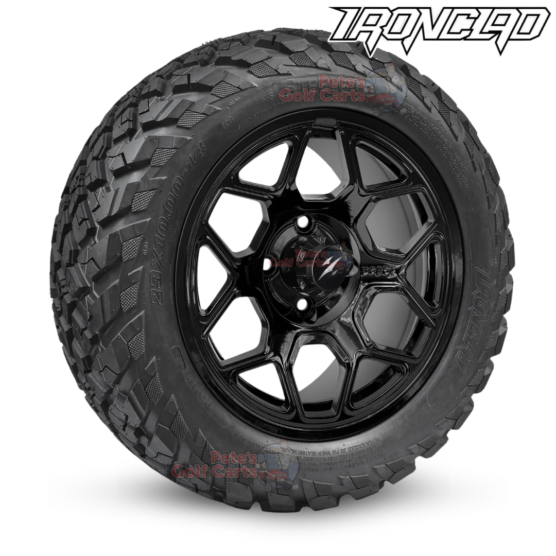 14″ Yeti Gloss Black Golf Cart Wheels and 23″ All Terrain Tires Combo – Set of 4 (23″ tall)
