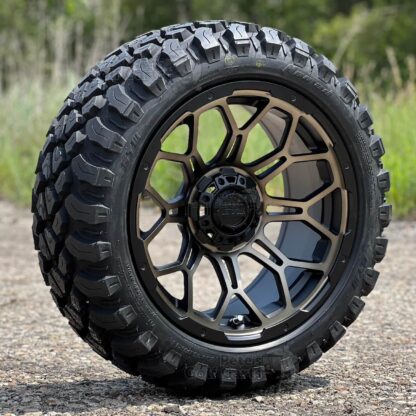 These stunning 15″ Bravo aluminum wheels come mounted with the popular 23x10R15 tall GTW Nomad all-terrain golf cart tire that is DOT approved and a steel belted radial design. The perfect match for your golf cart dreams! With a height of 23″, your cart will need a lift kit to accommodate this wheel and tire pairing (see golf cart lift kit requirements below). This dynamic lifted golf cart wheel and tire combo will turn heads and win all sorts of compliments as you roll by. Your lifted golf cart will never feel the same!
