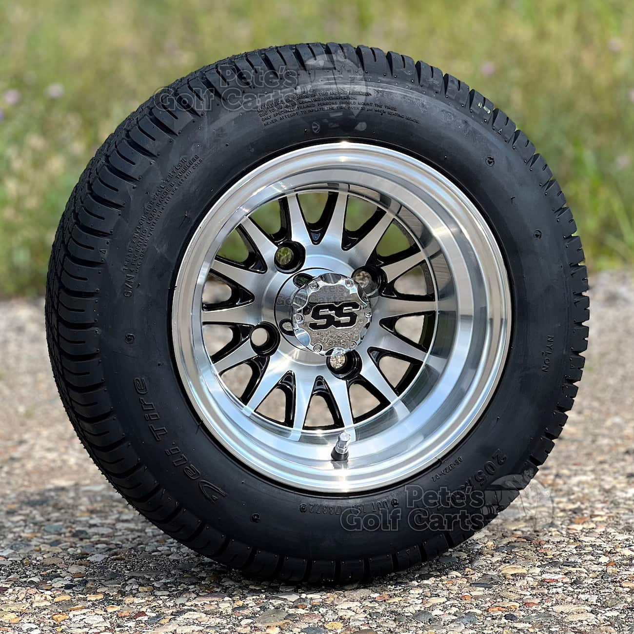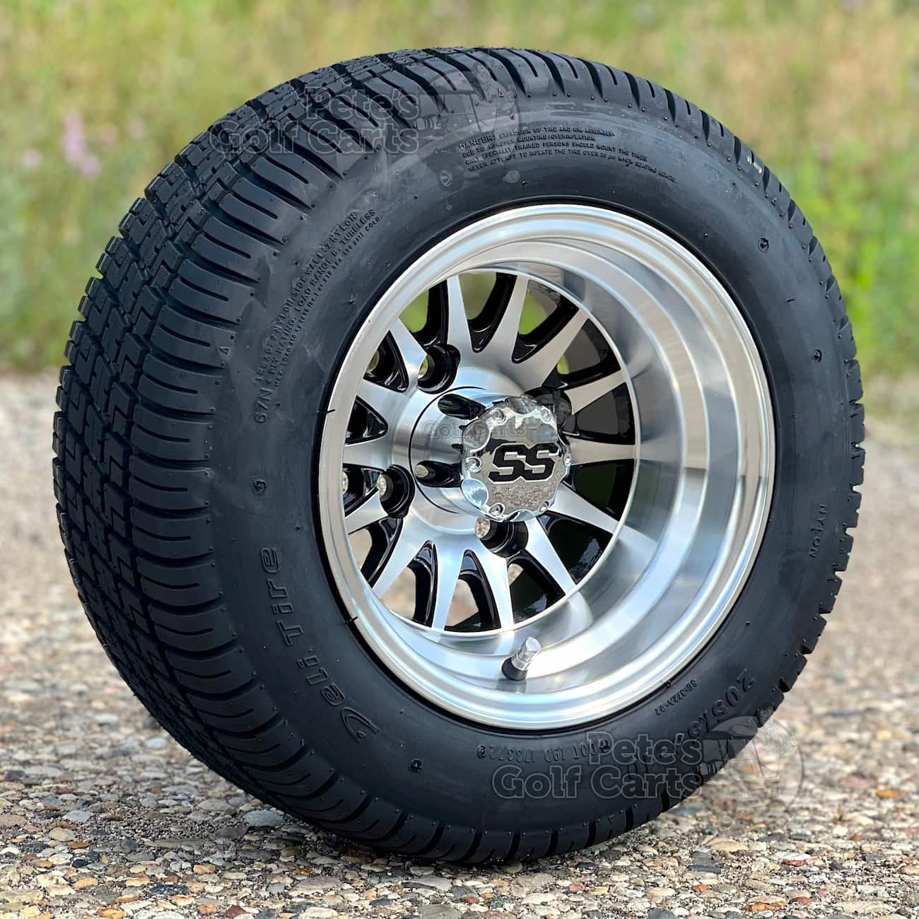 10″ Phoenix Black/Machined Golf Cart Wheel and 205/50-10 DOT Street Tire | Single Assembly – RHOX®
