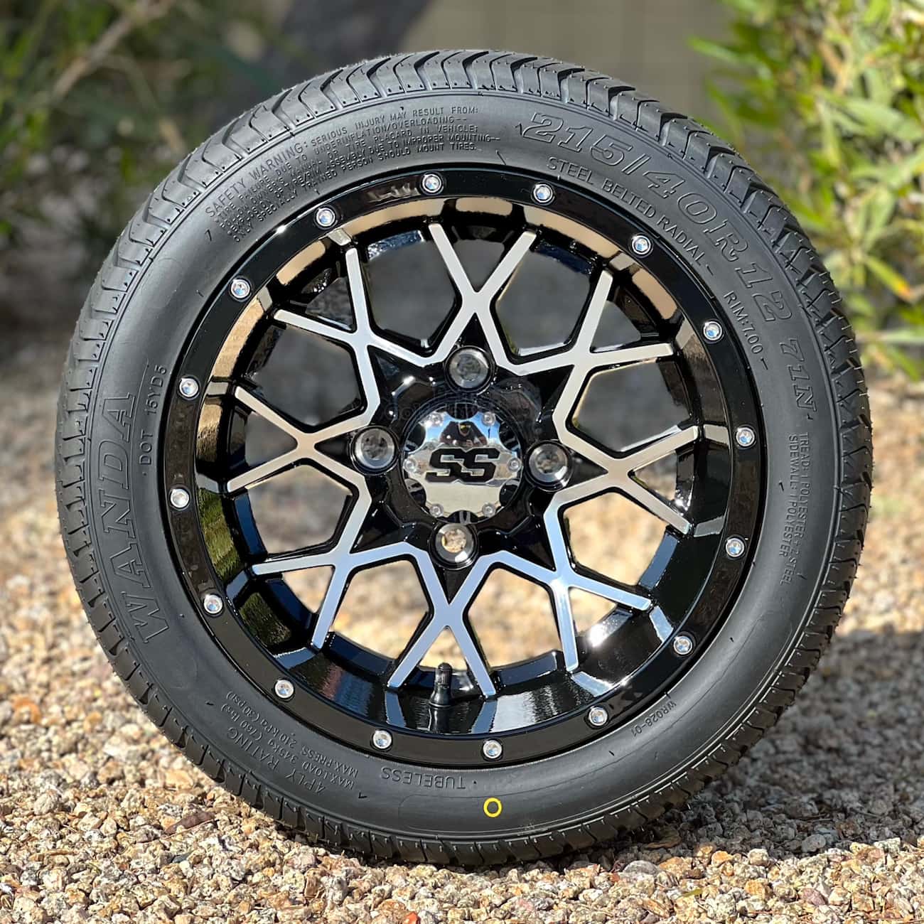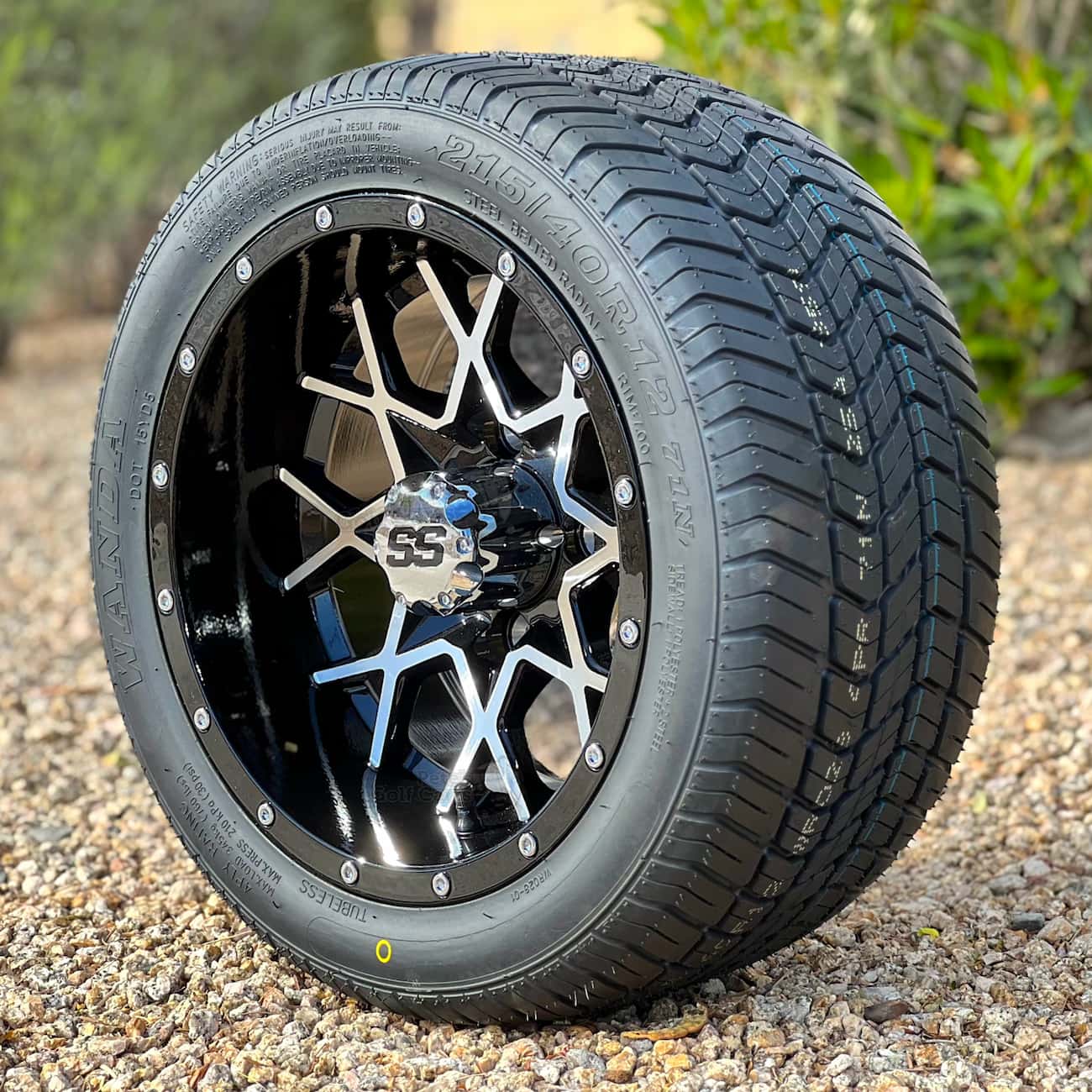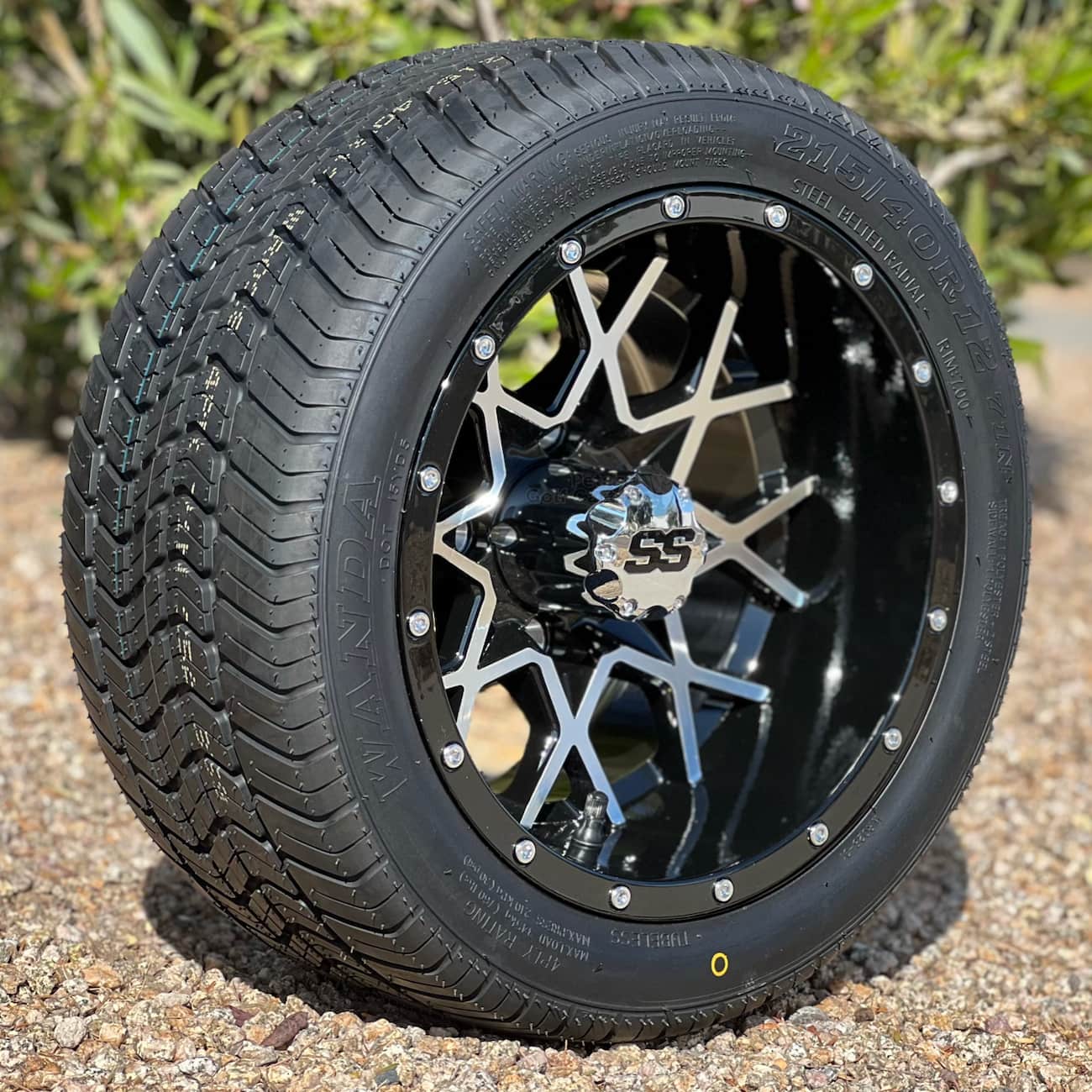 Pete’s 12″ Matrix black/machined golf cart wheels are a fan favorite! A classic black painted wheel with a machined finish on the detailed spoke design provides a truly awesome on your golf cart! Pete has taken these beautiful 12″ Matrix aluminum wheels and combined them with a stellar lineup of great 215/40-12 golf cart tires. The 215/40-12 tire stands 18.5″ tall for a non-lifted golf cart wheel and tire combo that is hard to beat! Choose from the Excel Classic, Wanda Steel Belted Radial, Xcomp Gladiator 215/40R12 and more! Check out the information below for more specs on the individual tires.