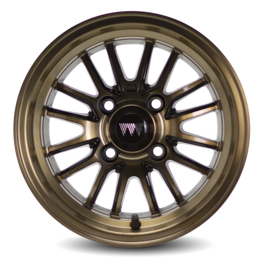 - 4 x 12″ Type V Bronze/Black Wheel Mate Aluminum Golf Cart Wheels mounted on