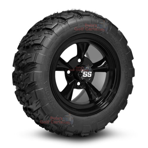 12″ Godfather Gloss Black Golf Cart Wheels and 20″ย All Terrain Tires Combo – Set of 4 (20″ tall)