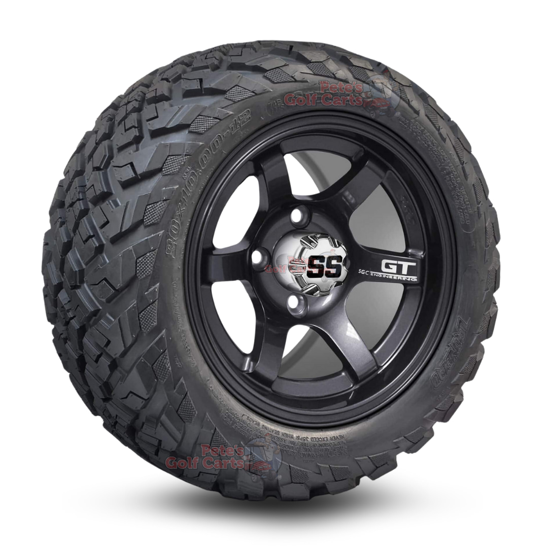 12″ GT Gunmetal Golf Cart Wheels and 20″ย All Terrain Tires Combo – Set of 4 (20″ tall)