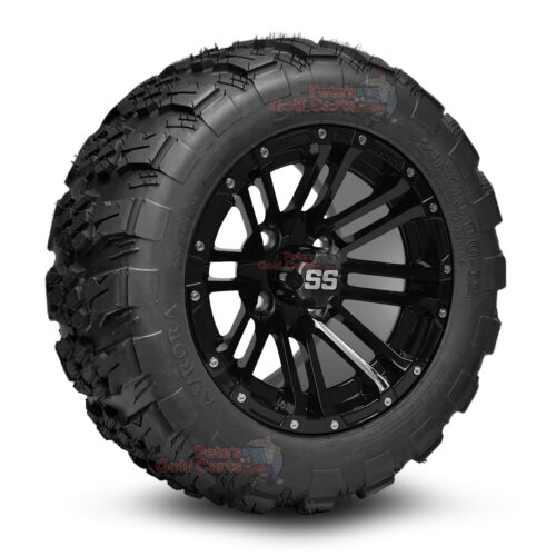 This 12″ HD3 Gloss Black Golf Cart Wheel and 20″ Tire Bundle Includes:
