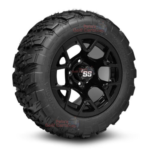 12″ Rally Gloss Black Golf Cart Wheels and 20″ย All Terrain Tires Combo – Set of 4 (20″ tall)