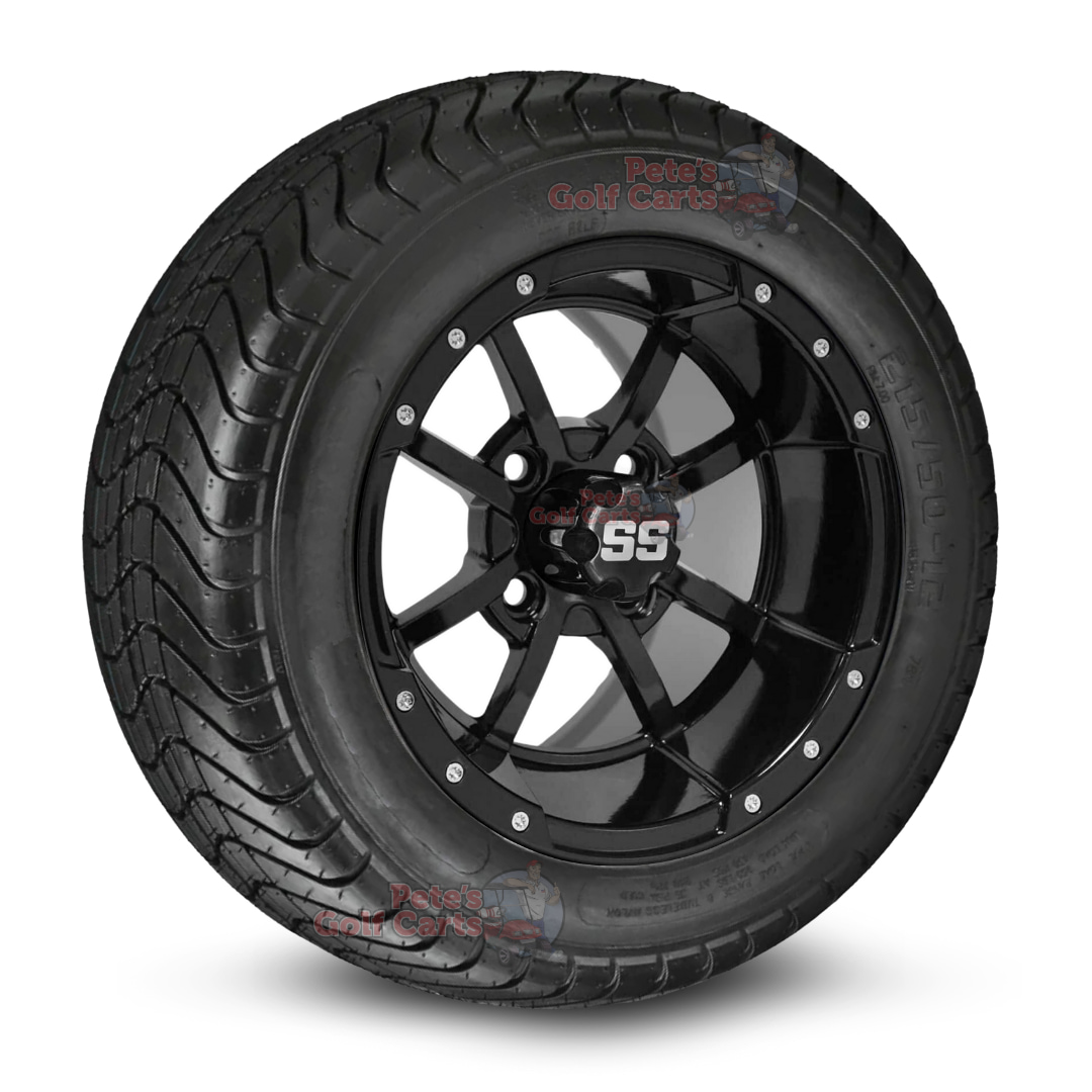 Grab this 12″ gloss black Storm Trooper wheels and 215/50-12 golf cart tires combo today and get ready to feel the difference!