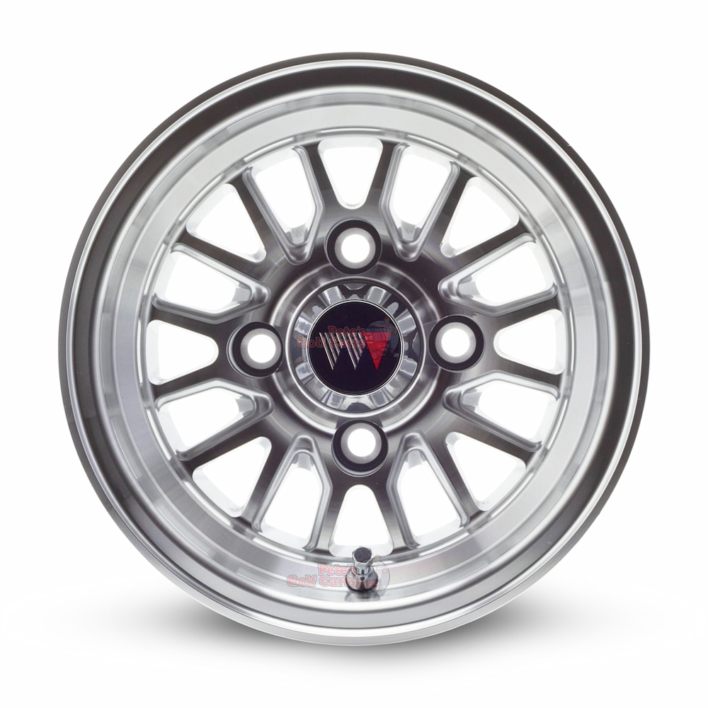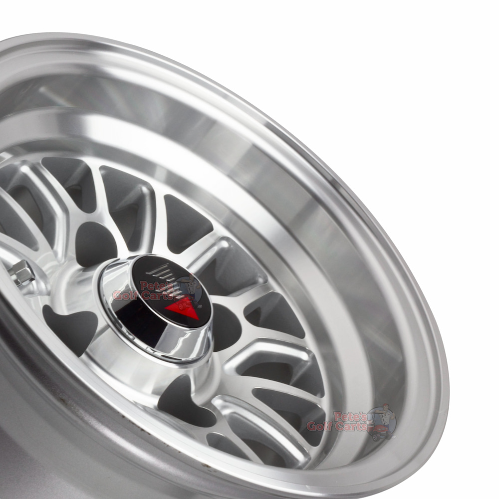 The 10″ TYPE V Machined aluminum golf cart wheels are premium 10″ golf cart wheels that are truly next-level and allow your cart to stand out from the rest. This custom golf cart wheel design by Wheel Mate, the Type V, are a staple in their lineup. The wheel goes through a detailed machining process to create that bright and shimmering aluminum look. It is then finished with a deep clear coat that both protects the wheel and provides that smooth feel.!