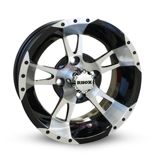 RHOX 12″ RX210 Black/Machined Golf Cart Wheel w/ Center Cap | 12×7 ET-25