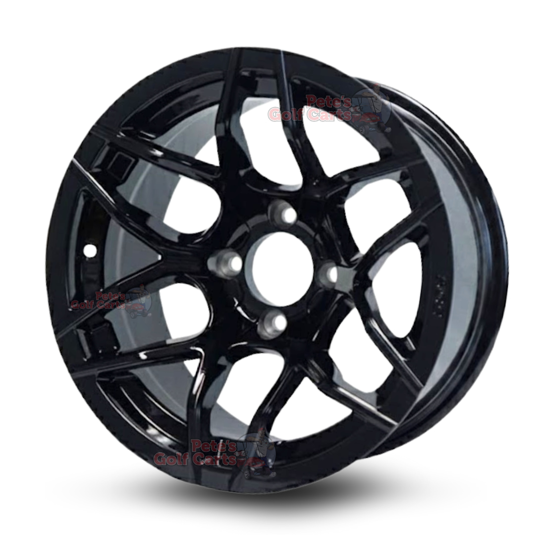 Cool new designs and great quality meet great value with every golf cart wheel Pete offers. Pete says all orders over $99 ship free freight in the US. Order your set today and save big! This specific golf cart wheel includes the center cap. (Universal fitment on and golf cart, this wheel will fit your Club Car, Columbia, EZ-GO, Gem Car, Tomberlin, Star Car and Yamaha golf cart.) Lug nuts sold separately.