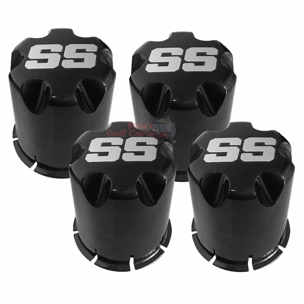 14″ Stalker Gloss Black Golf Cart Wheels w/ Center Caps | 14×7 -20mm