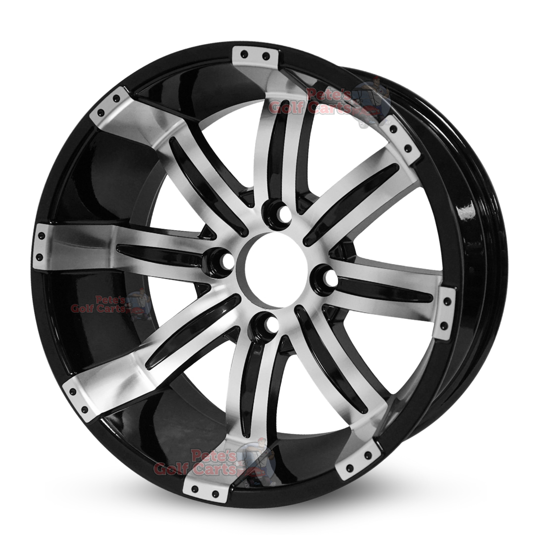 If you are looking for a brand new set of 14″ Tempest Black/Machined golf cart wheels or just a single replacement wheel then you have come to the right place! The Tempest golf cart wheel design is one of the most popular and longest standing in the golf cart industry. Featuring 14″x7″ sizing, -20mm backspacing, and 4×101.6mm (commonly referred to as 4×4) lug pattern, these 14″ Tempest machined wheels will fit all common golf cart models.