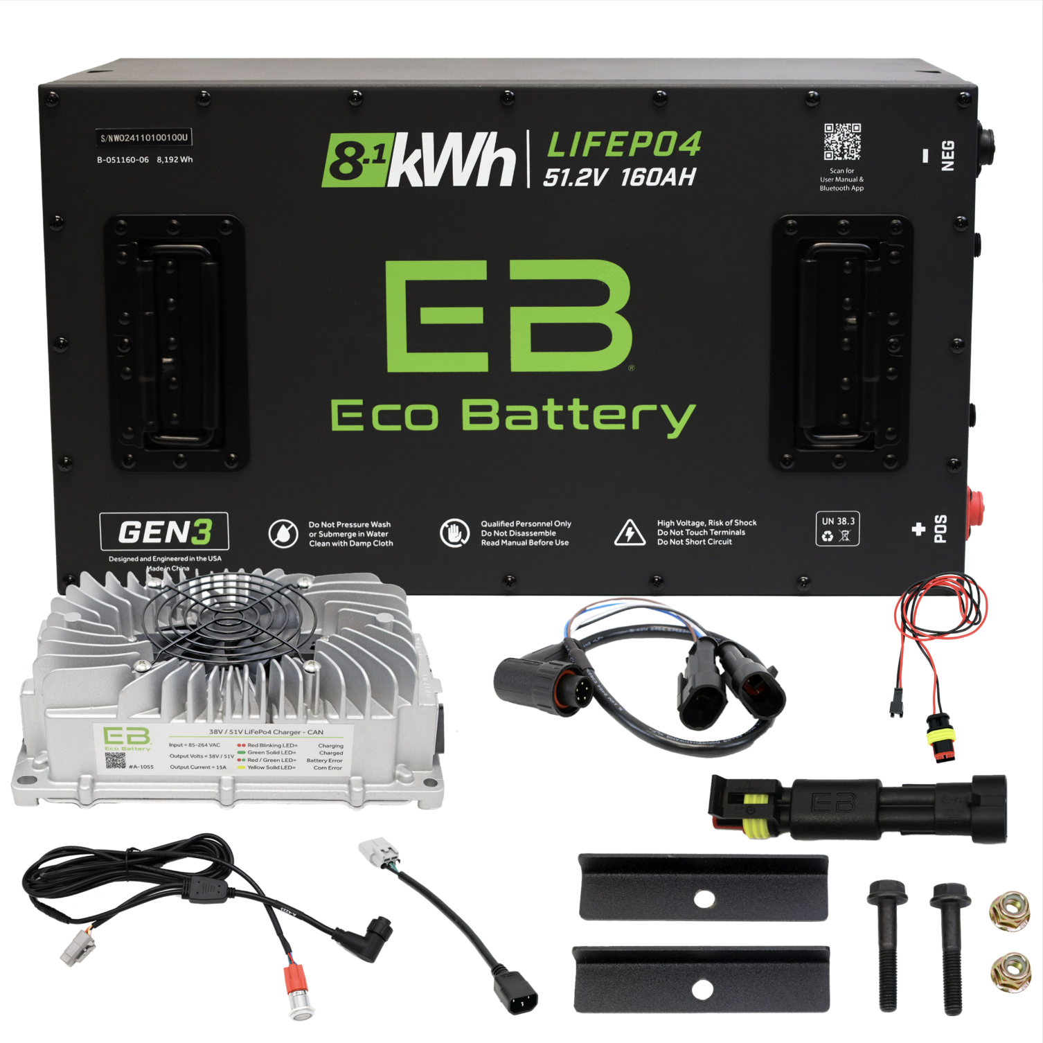 Zero Maintenance: With lithium, life is simplified. There’s no need to check for corroded terminals or keep the water topped off in your lead acid batteries. Accordingly, acid stains on your floor can be forgotten about as well! Extended Range: Simultaneously, lithium provides you extended range so you can explore further and play longer with plenty of power to get you home. Reduced Wear and Tear: Due to the reduced weight of lithium batteries, the vehicle experiences less wear and tear on critical engine components compared to lead acid batteries. Longer Life Span: Finally, extend the lifetime of your battery by up to 40% when switching from lead acid to lithium, a promise backed by Eco’s 8-Year Warranty.