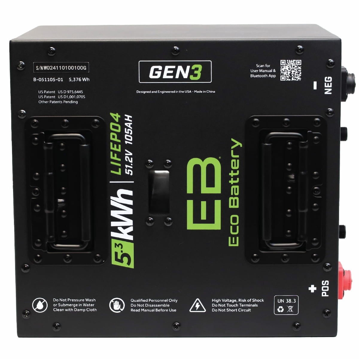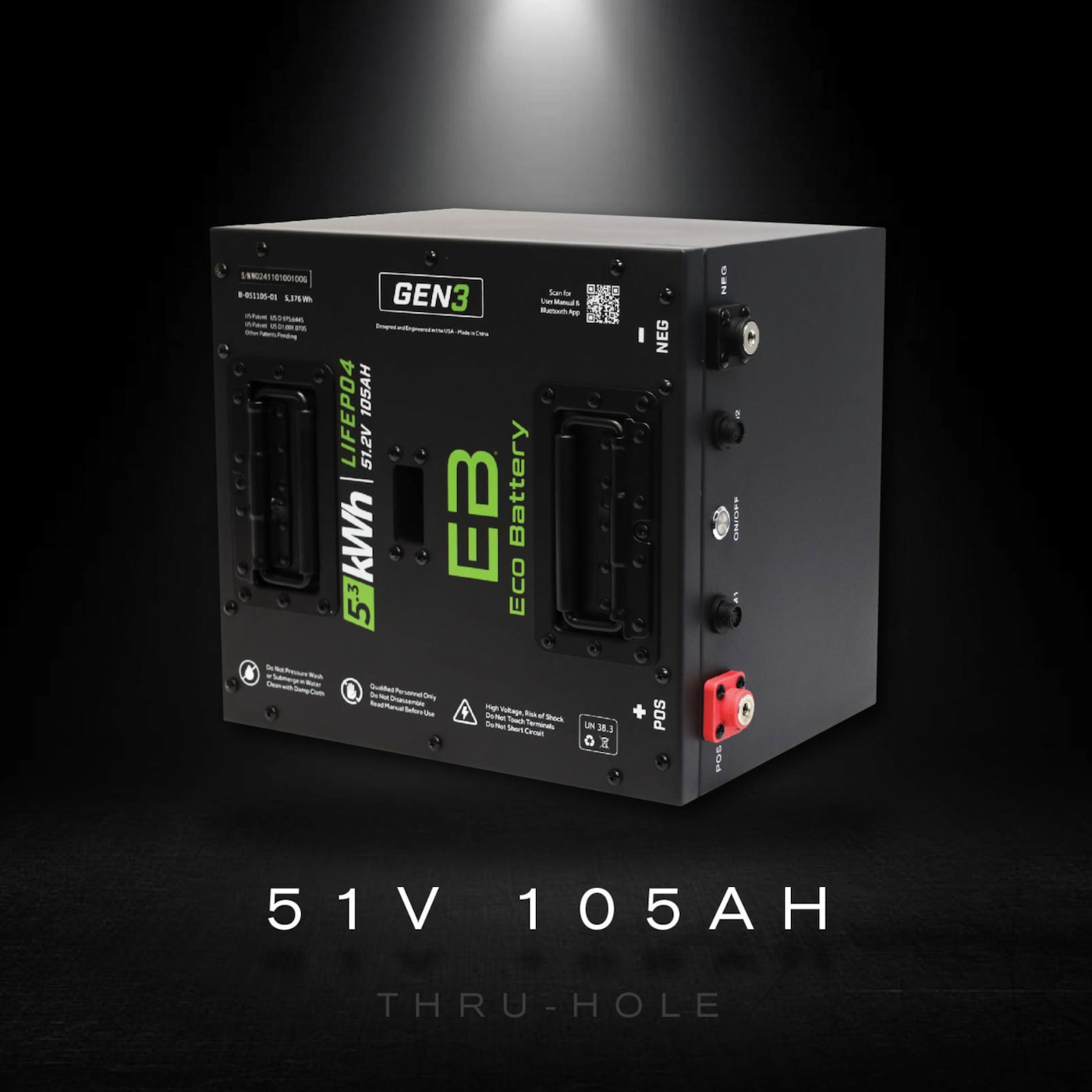 - 51V 105Ah LifePo4 Battery “Thru Hole” – Eco Battery# A-051105-01