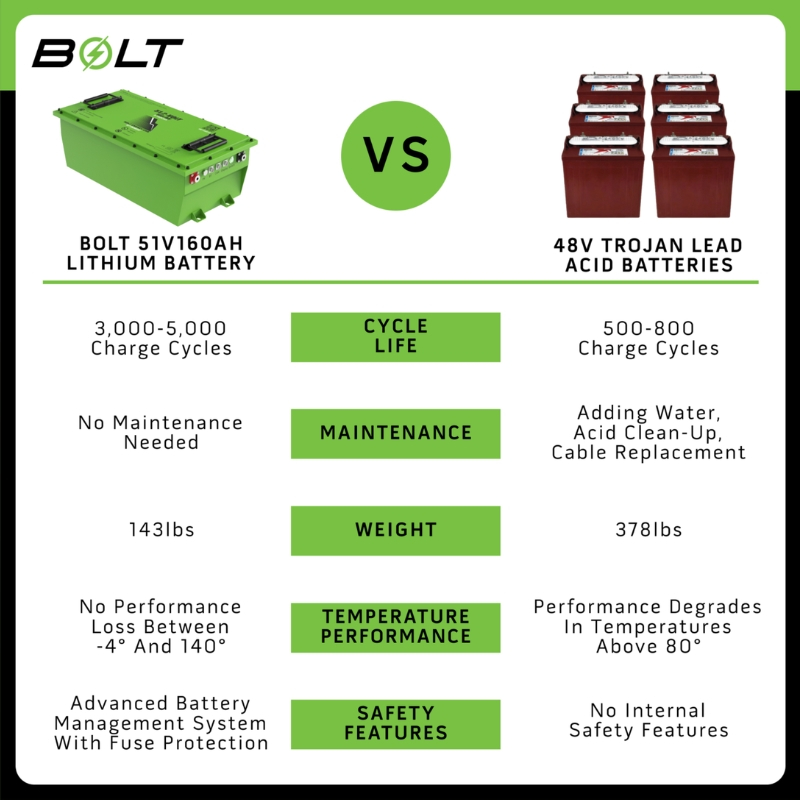 Bolt Energy 48V 60Ah Lithium Golf Cart Battery Kit for Club Car Precedent, Onward, Tempo | 51V 60Ah Square Battery with Professional Kit