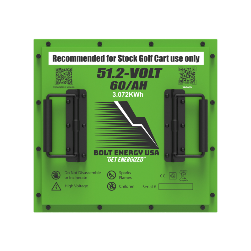 Bolt Energy 48V 60Ah Lithium Golf Cart Battery Kit for Club Car Precedent, Onward, Tempo | 51V 60Ah Square Battery with Standard Kit
