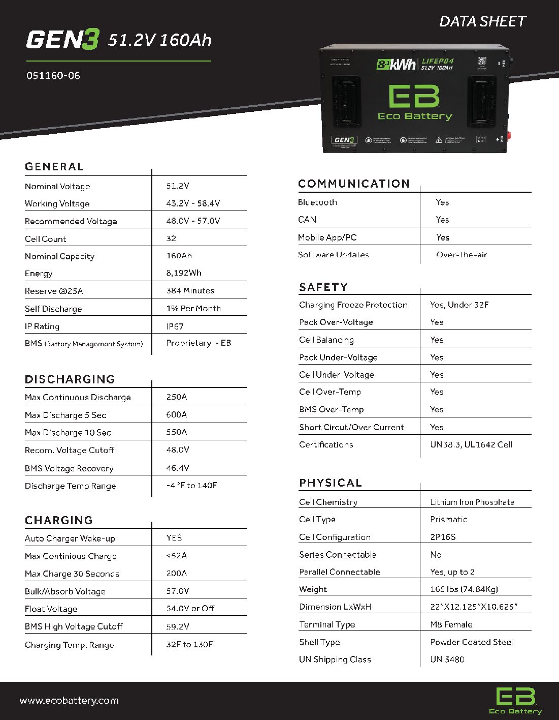 - 51.2V 160Ah LifePo4 Battery – Nivel/Eco Battery# A-051160-06-G3