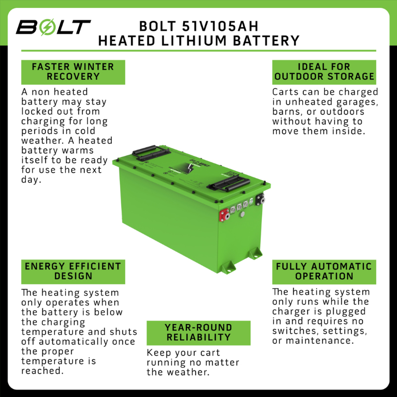 Bolt Energy 48V 105Ah Heated Lithium Golf Cart Battery Kit (Thin) for EZGO Workhorse, MPT & Terrain