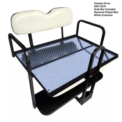 The strong seat frame is made from steel that is powder coated with a durable finish while the flip-down utility bed surface is constructed from durable weather proof plasti-board for long life that will withstand the elements (No metal to rust or wood to rot out!). The quality vacuum-formed seat cushions are designed to tie into original patterns and colors. This kit includes all the required hardware, screws and installation instructions to make installation a breeze. Add items like Pete’s Cargo Caddie Utility box or Golf Bag Holder for added functionality!