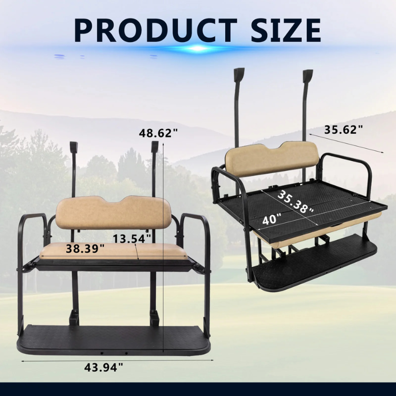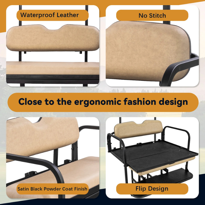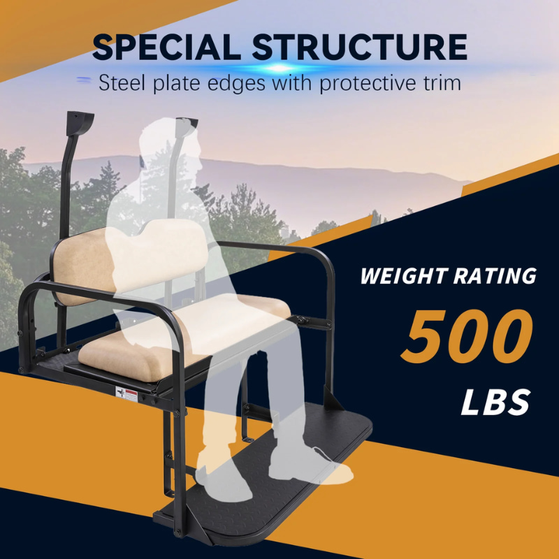 - RideAlong budget-friendly golf cart rear seat kit feature steel construction and flips open for use as a cargo area