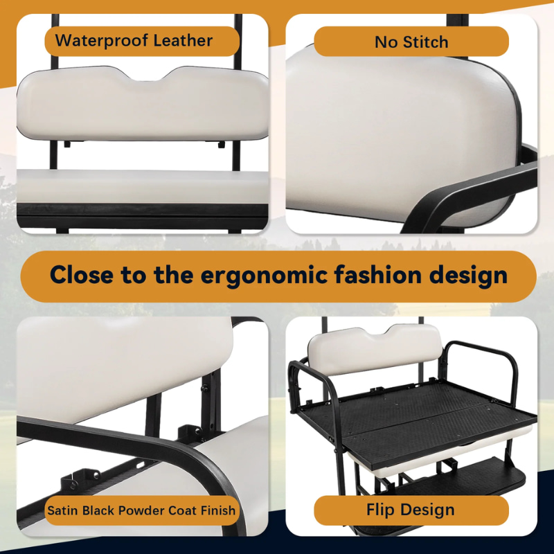 - RideAlong budget-friendly golf cart rear seat kit feature steel construction and flips open for use as a cargo area