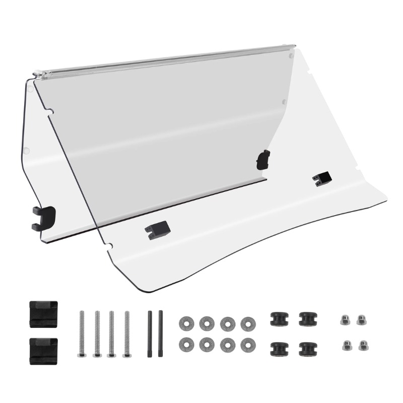 CLEAR Golf Cart Windshield | Evolution D5 Ranger & Maverick | 2-Piece, Foldable, Complete Install Kit