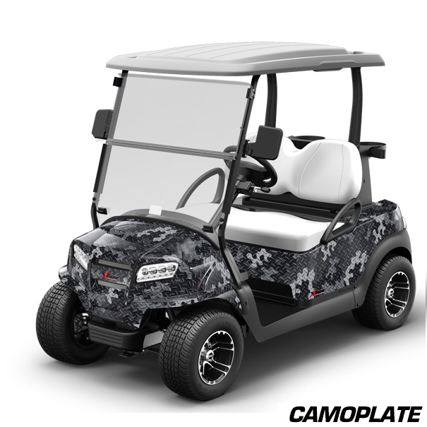 Customize your Club Car golf cart with this Golf Cart Graphics Kit . This Golf Cart Graphics Kit is the finishing touch to your new Club Car Onward golf cart. Set your cart apart from the pack. Be the envy of your neighbors and a hit with all the kids once you wrap your cart with this awesome looking golf cart graphics kit. All of Pete’s Premium Graphics are produced to order and may take up to 5 business days to manufacture. All of our golf cart graphics are digitally printed with UV resistant inks that are guaranteed not to fade for years to come. These are not plain vanilla 3 or 4 color silk screen stickers. All of our designs are cutting edge ( No pun intended… ) with the use of the latest digital technology to produce extremely vivid images with millions of colors! All of our golf cart graphics come with the thickest layer of scratch-proof clear vinyl available. Placed over like laminate for an Armor Like layer of protection. Not to be confused with others offering custom graphics all our graphics kits use Genuine 3M brand adhesive which assures our graphics won’t ever be peeling off unless you want them to. “The THICKEST – TOUGHEST GRAPHICS ON THE PLANET”