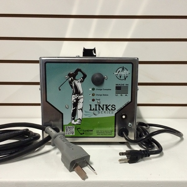 This charger features the new LED indicator design to keep you informed of the current charge status at a glance. The all new Links Series golf cart battery charger is designed with the golf cart owner in mind. Plug-n-play technology… plug it in and forget about it. Whether you are going to bed, leaving for the week or the summer. The advanced storage mode will allow you to keep the batteries in your golf cart fully charged while on vacation or away for the season.