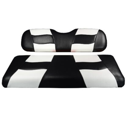 One (1) Custom Madjax Golf Cart Seat Cover Set Black and White Riptide consists of: